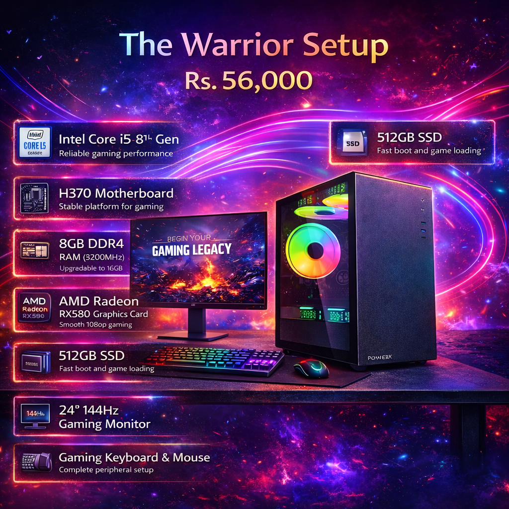 Mid level PC gamers, students, and budget-conscious gamers who want a complete setup without compromises. Play popular esports titles like Valorant, CS2, Fortnite, and League of Legends at high frame rates.