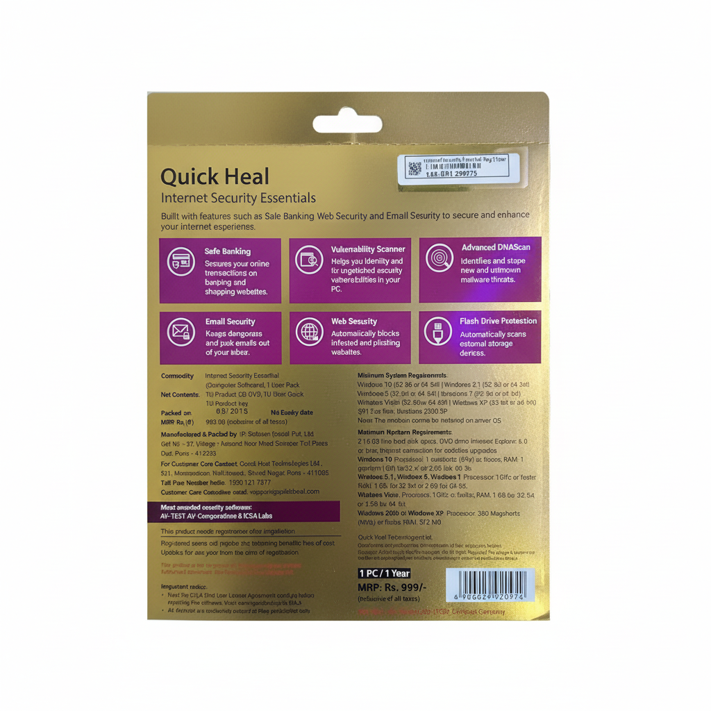 Internet Security Essentials built with features such as Safe Banking, E-Mail Security, Web Security, Vulnerability Scanner, Advanced DNA Scan for malware threats and Flash Drive protection